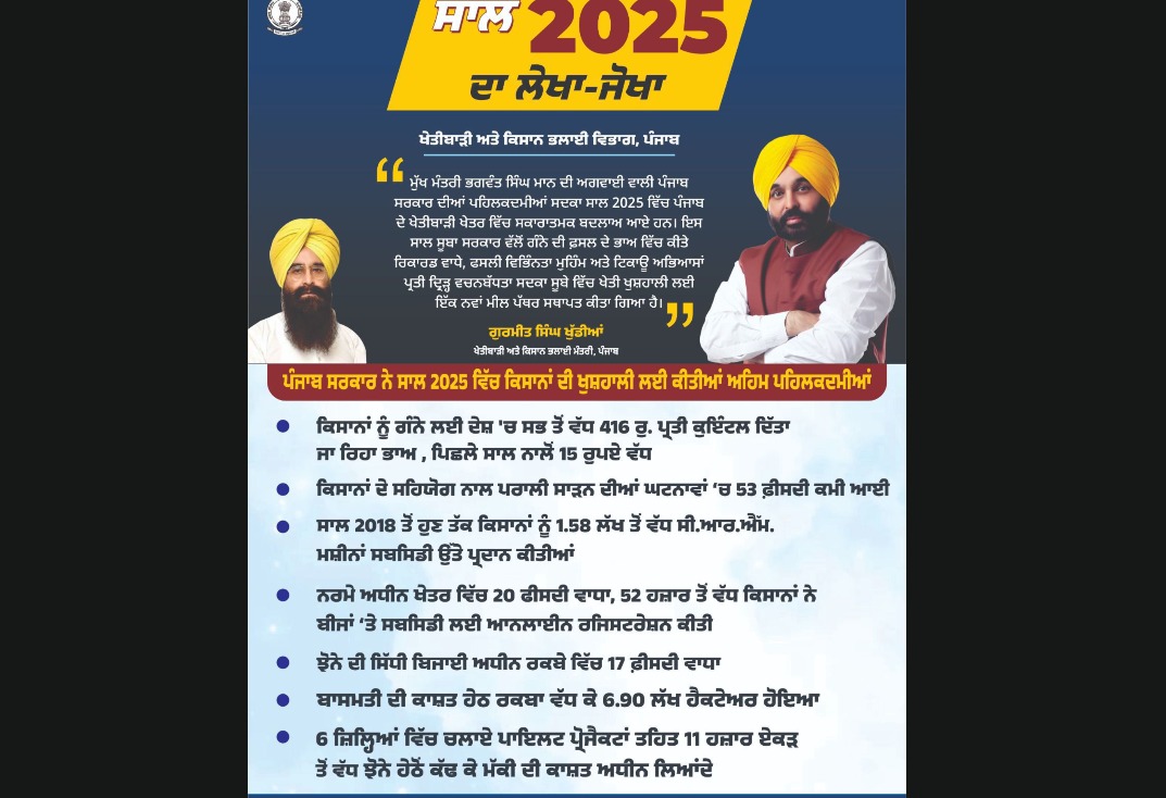 Mann government has made 2025 the year of prosperity for farmers: Punjab government’s historic initiative is bringing significant changes to Punjab’s farms As the year of 2025 concludes, Punjab’s agricultural landscape stands transformed, driven by Chief Minister Bhagwant Singh Mann led the state government’s bold initiatives. The year has been marked by record farmer remuneration, … Read more